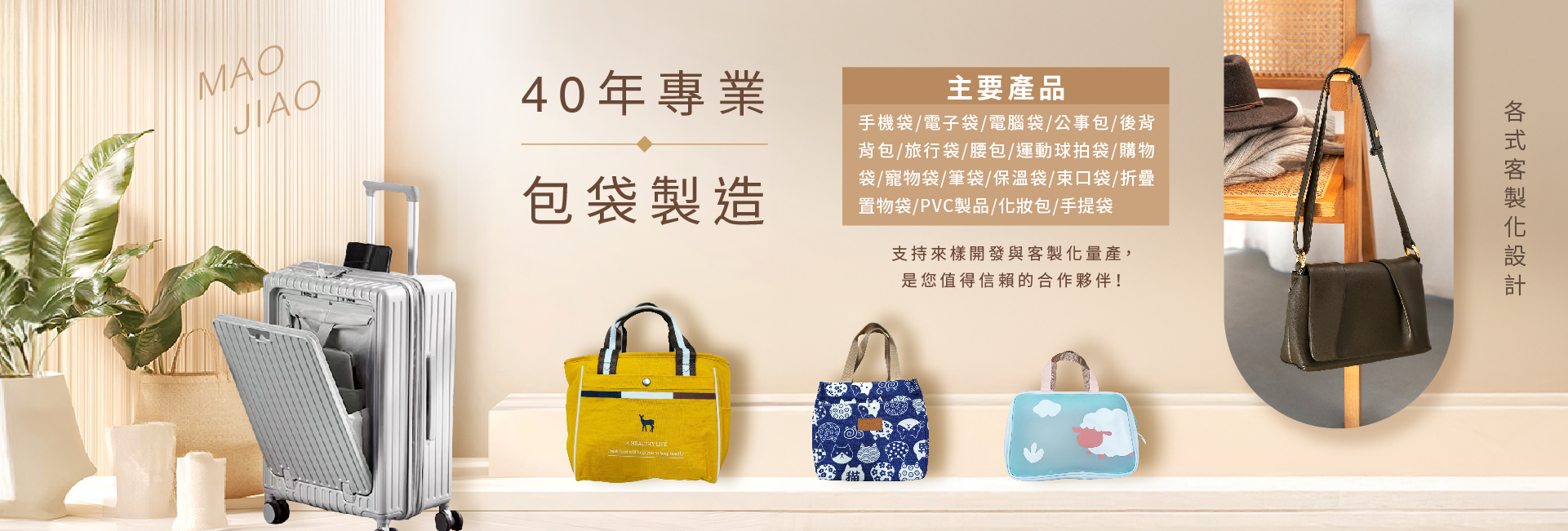 懋嘉興業有限公司是一家成立於四十年前台灣的知名手提袋、背包、化妝包、購物袋、環保袋、旅行袋、保溫袋等產品的製造商和供應商。